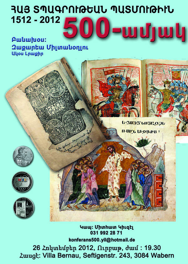 Yerevan’ın ‘Dünya Kitap Başkenti’ ilan edilmesinin ardından yıl boyu düzenlenen sergiler için, 500 yıl önce basılan kitaplar raflardan inerek insanlarla buluşuyor. Ermeni alfabesinin keşfi ile başlayan elyazmaları dönemine ve basılan ilk kitaplara ait eşsiz örnekler sergilenirken, Agos yazarlarından Zakarya Mildanoğlu da bu kapsamda Avrupa’nın çeşitli kentlerinde Ermeni, Kürt ve Türk katılımcılara bir dizi konferans verecek.