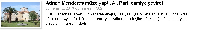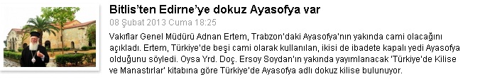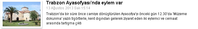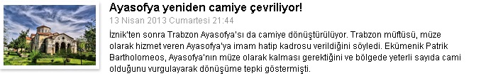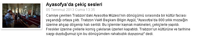 “Geçmiş dönemlerde bunlara göz yummak mümkün olabilir. Ama şimdi başka bir Türkiye var” diyen Arınç, yeni Türkiye’de hukukun egemen olması gerektiğini söyledi. Arınç, Trabzon Ayasofya Camii’nin de ibadete açılması için karar verdiklerini ve bunun üzerine dava açıldığını belirterek, “İznik Ayasofya’da dava açan olmadı. Ama Trabzon’da dava açan da oldu. Ama çok şükür hukuk devlet olan Türkiye’de artık hâkimler var. Çok şükür Trabzon Ayasofya Camii de hukuk kararıyla cami olduğu tescil edildi ve böylelikle 2 tane küçük Ayasofya Camii ibadethane olarak faaliyete geçildi. Darısı demeyeceğim, farklı anlarsınız. Ama Ayasofya Ayasofya derken, sanki gönlüme bunlar geliverdi. Bu mahsun Ayasofya’ya bakıyoruz, inşallah güleceği günlerin yakın olmasını Allah’tan diliyoruz” dedi.