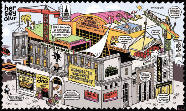 Asmalımescit'te kamusal alan kaybının önüne geçmek için harekete geçtiği iddiasında olan Beyoğlu Belediyesi reklam panosuna dönen İstiklal Caddesi için kılını kıpırdatmıyor. Markaların reklam savaşı caddenin kamusallığını gölgeliyor. Sokaklar geçici özelleştirmelerle ticarileştiriliyor. Ulusal ve uluslararası markalar cadde üzerindeki mağaza sayısını arttırma yoluna gidiyor. Taksim Meydanı'nı yayalaştırma adı altında insansızlaştırılma projesi toplumsal iradenin üstünü çiziyor. Beyoğlu disipline edilerek tektipleştiriliyor ve bir tüketim merkezi olarak yeniden kurgulanıyor.