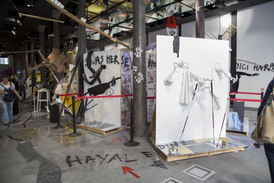 Bu seneki, yakaladığı izleyici sayısına rağmen, ‘izleyici dostu’ bir bienal değildi. Arter’deki düzenleme sakin ve etkiliyken, Antrepo’dakikaos ve gürültü insanı acilen mekânı terk etmeye zorluyordu. Serginin sunduğu en önemli fırsat, kamusal alana dair sözü olan işlere, farklı sanatsal tavırları ve estetik tercihleri yansıtan geniş bir yelpazede yer verilmesiydi. Bununla birlikte, son derece özensiz işler, güncelliği kalmayan sanatsal tavırlar da gördük. Örneğin Diego Bianchi’nin, SALT’ın girişindeki, sokağı ve direnişi galeriye taşıma sevdasındaki yerleştirmesi ‘Ya Pazar Ya Ölüm’, zaten sokakta direnişin ve yaratıcılığın âlâsını ortaya koyan izleyicide “Bu muymuş güncel sanat!” şeklinde bir reaksiyon yarattı. Bu anlamda, Gezi’nin zamana yayılan etkisi, ‘kamusal alan yaratma’ söyleminin arkasına sığınarak, yaratıcılıktan, içerikten yoksun, kolaycı işler üreten bazı sanatçıların pratiklerini de tartışmalı hale getirdi. Bu tarz işlere sergide yer veren, hatta –Hollandalı sanatçılar Osterholt ve Uitentuis’in ‘Yardım Eden Eller’ işinde olduğu gibi– onları öne çıkaran küratöryel yaklaşım ise başka bir tartışma konusu.