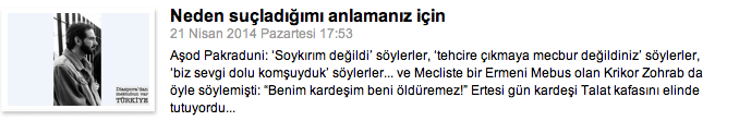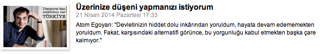 Bugün Türkiye’de “Diaspora” etiketi ile âdeta şeytanlaştırılan insanların tümünün kökleri, Anadolu’ya dayanır. Agos’un, “Türkiye halkına bir mektupla hitap etseniz, onlara ne söylemek istersiniz?” sorusuna yanıt veren 16 kişinin dede ve ninelerinin memleketleri, Maraş, Adıyaman, Arapgir, Eğin, Dersim, Diyarbakır, Van, Sivas, Mersin, Elazığ, Kilis, Erzurum, Kayseri, Tokat, Antep, Dörtyol ve Urfa’ya dayanıyor. Bir Anadolu harmanı…