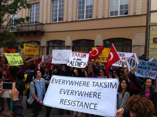 18:26 Yayıncılar Birliği basın açıklaması: 'Taksim'deki ve diğer illerdeki eylemlerde polisin aşırı güç ve gaz kullanımıyla vatandaşların toplanma ve gösteri özgürlüğü ihlal edilmiş ve edilmektedir. Türkiye Yayıncılar Birliği olarak bu hak ve özgürlüğün devlet eliyle ihlalini kınıyor, yetkilileri bu ihlale bir an önce son vermeye çağırıyoruz.' http://www.turkyaybir.org.tr/