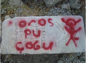 orospu cogu, a 113 year old Armenian gravestone decorated by a Turkish graffiti artist |