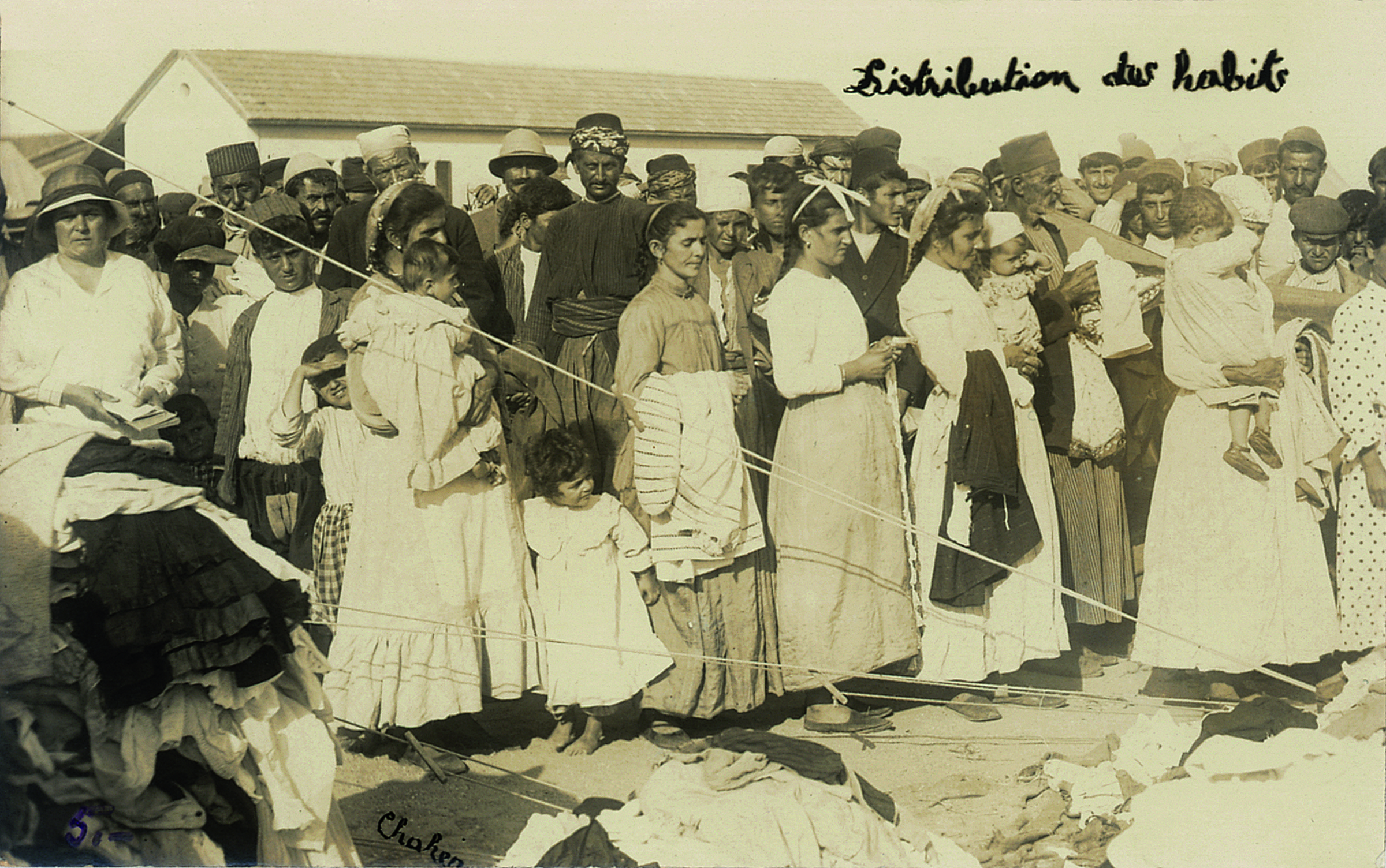 Mısır, Port Said Limanı’nda dört bin Ermeni için kurulan mülteci kampında ekmek ve süt dağıtımı. Dikran Andreasyan’ın notlarında ‘Kurtarıcımızın bebekken güvenlik ve sığınmak için Mısır’a getirildiğini unutmuyoruz. Yusuf’un kardeşi, verilen mısır ve buğdaydan ötürü en az bizim kadar minnettar olmuştur’ yazar. (OCC Koleksiyonu)