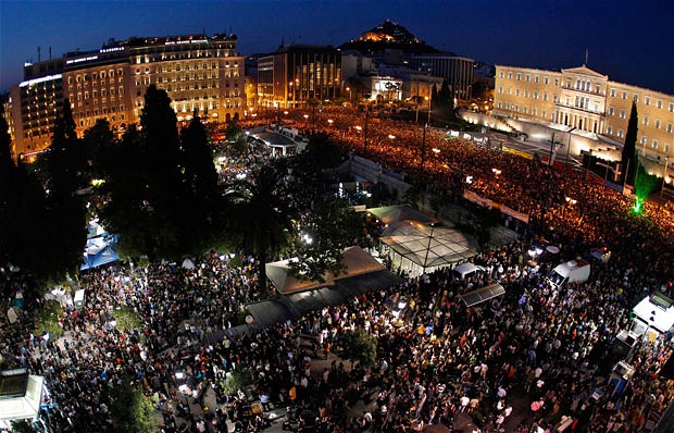 *Atina'da parlaemento binası önünde bulunan Sintagma Meydanı yaklaşık ay boyunca ekonomik kriz protestolarına ev sahipliği yaptı.