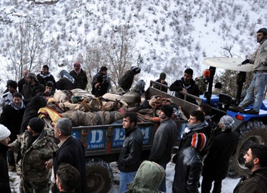 “35 Sivile Bomba” sür manşeti ile çıkan gazete “Şırnak Uludere’de sınırdan kaçak mazot getiren grubu terörist sanan TSK bölgeye F-16’ları gönderdi. Ve sabah Uludere’ye traktörler içinde 35 sivilin cesedi geldi” diye duyurdu.