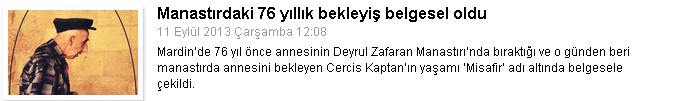 Mardin’de 70 yıldan beri Süryanilerin Deyrul Zafaran Manastırı’nda annesinin yolunu gözleyen, bu süre içinde manastırda bahçıvanlık yapan ve ‘Bahe’ diye çağırılan Cercis Kaptan, bir süre önce rahatsızlanarak hastaneye kaldırıldı. Özel bir hastanede tedavi gören Kaptan, bu sabaha karşı kalp yetmezliğinden yaşamını yitirdi.
