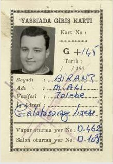 1960- Birand: “Merakımdan, akrabam Ulvi Yanal’ı görebilmek için gittiğim Yassıada giriş kartı.” |
