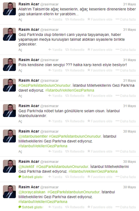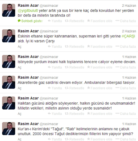 MHP’nin İstanbul Belediye Başkan Adayı Rasim Acar, Twitter’da Gezi eylemlerine destek veren bir Çarşı hayranı çıktı!