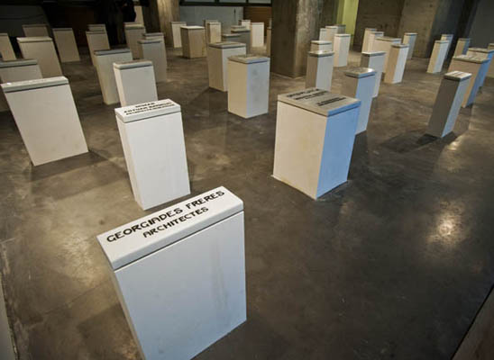 Her mimar yazıtının aslına uygun vektörel çizimlerini üretip bunları mermer levhalara bire bir ölçülerde uyguluyorsun. Aslında binalarda ne görüyorsak, serginin toplamında onu görüyoruz. Bu replikaları üretme fikrine nasıl geldin?