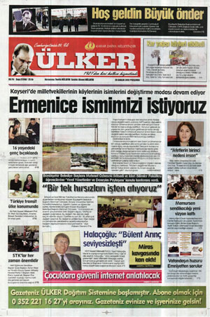 Kayseri’de yayımlanan ‘Ülker’ gazetesi, 20 Aralık 2012 Perşembe günü, Ermenice ismimizi istiyoruz’ başlığıyla manşetten verdiği haberinde “İsim değiştirme modası devam ediyor” ifadelerine yer verildi. Haberde Sosun’un Ermenice bir isim olduğu belirtti ve köylülerin bu ismi istemesi ‘ilginç’ olarak yorumlandı. |