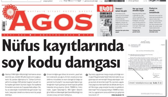 Agos’un Ağustos ayında ortaya çıkardığı “Soy kodu” skandalı günlerce konuşulmuştu. Her şey İstanbul’daki bir Ermeni anaokuluna çocuğunu kaydettirmek isteyen bir ebeveynin verdiği mücadeleyle başlamıştı. Öğrencinin velisi olan anne, vaftiz olup kendi kimliğine dönmüş bir Ermeni’ydi. Anne, atalarının kimliğine geri dönerken, nüfus cüzdanındaki din hanesini Hıristiyan olarak değiştirdi. Anne babanın çocuklarını kaydettirmek istedikleri Ermeni anaokulunun müdürlüğü ise, yasal mevzuat gereği kendilerine şu cevabı verdi: “Milli Eğitim’den okula kayıt yaptırmanızda bir sakınca olmadığına dair resmi izin belgesi alın.”