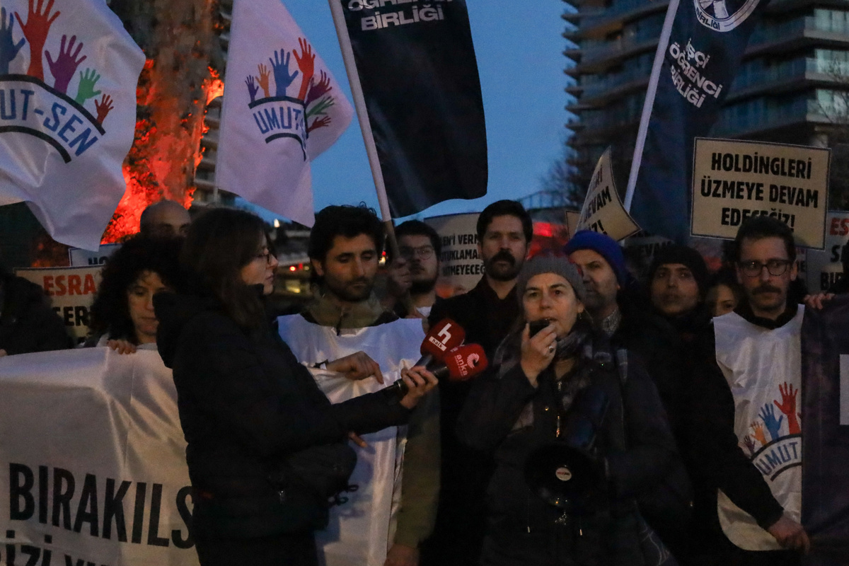 “Bugün burada, yağmanın, talanın ve sömürünün merkezlerinden biri olan Limak Holding’in önündeyiz. Bir yanda maden şirketleri, holdingler ve talan projeleri; diğer yanda toprağını, emeğini ve yaşamını savunanlar var. Devletin yargısı da bugün holdinglerin safında yer aldığını bir kez daha ilan etmiştir. Esra Işık 11 gündür Limak Holding’in doğa katliamına karşı toprağını savunduğu için tutuklu. Mehmet Türkmen, tekstil işçisinin kölelik düzenine karşı direndiği için haftalardır tutuklu. DİSK/Limter İş Sendikası yöneticileri düzmece gerekçelerle aylardır tutuklu. Başaran Aksu, maden işçisinin ekmeğini, köylünün toprağını ve onurlu direnişini savunduğu için tutuklandı.