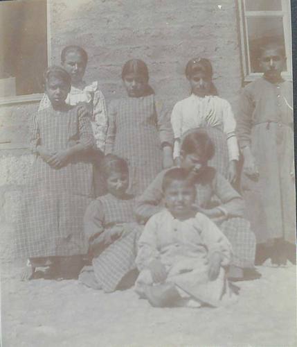 Harput, 1910. Resmin arkasında büyük ihtimalle misyoner Maria Jacobsen tarafından yazılan not: ‘Arapgir’den getirdiğim 8 zavallı çocuk. Küçük Vartuhi’nin el ve ayak parmakları eksik, üç tanesi kör, diğerleri sakat.’ © KMA Arşivleri, Danimarka |