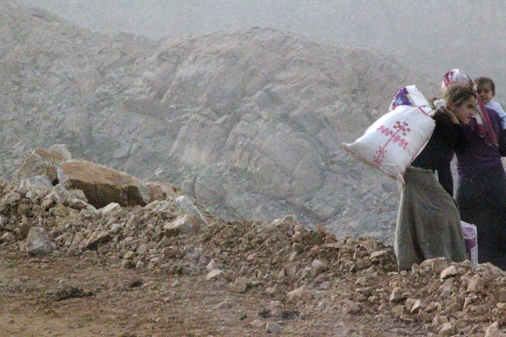 Sason’daki Maruta Dağı’nda gizli Ermeni hacılar. Çuvala işlenmiş Ermeni haçını görüp onlara yaklaştığımda, genç kız korktu ve çuvalın boş tarafını çevirdi. Ermeni olup olmadıklarını sorduğumda, annesi “biz Müslümanız” dedi. / © A. Hadjian