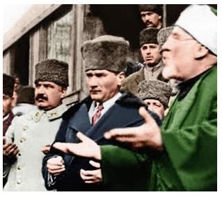 En çok istimal edilen dindar Mustafa Kemal imgesi ise hiç şüphesiz şu fotoğraftaki versiyon olsa gerek: