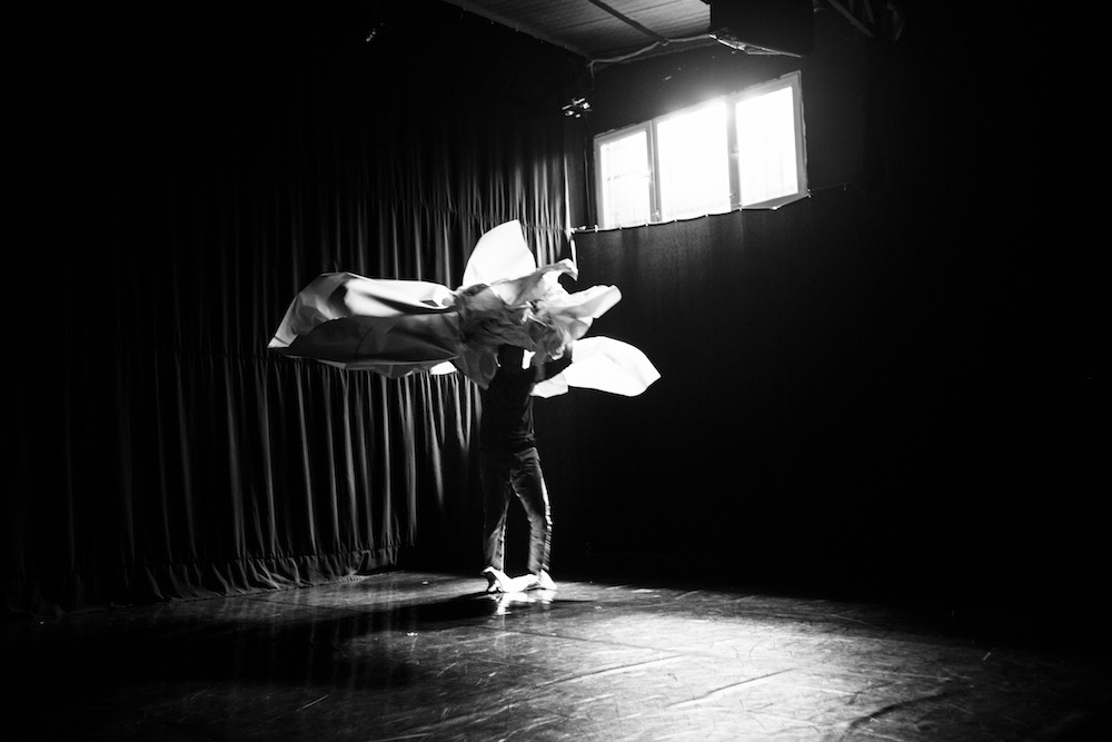 TG: Toprağın ve yerin temsili olarak seçilen ve bütün sahneyi kaplayan kâğıt parçası, dansın hikâyesinin temelini oluşturuyordu. Hikâyenin başında dansçının bedeni kâğıdın altında görünmüyordu. Bedenin hareketiyle kâğıt geri dönüşü olmayan müdahaleler aldı, şekillendi, dalgalandı ve hikâyenin doruk noktasında Ararat’ın heybetli görüngüsüne dönüştü. Sonrasında, kâğıdın kırışıp yırtılmasına ve bedenin yerden ayrılışına şahit olduk. Bedenin yerle kurduğu ilişki, beden saçılmış parçaların peşinden koşarken ve sonrasında bu parçaları plastik bir poşetin içine toplarken mücadeleci bir forma büründü. Artık beden topraktan/kâğıttan mutlak şekilde ayrılmıştı. O siyah poşet içindeki tüm kâğıt parçalarıyla âdeta bugün bilmediğimiz bir zamanın mekânına ait fragmanları barındırıyordu. Sonrasında torbayı yırtmaya çalışan beden, torbadan çıkardığı bir parçayla heyecanlandı. Toprakla kurduğu ilişkinin artık tersine çevrilemeyeceğini bilse de, torbadan çıkan o ufak parçanın umuduyla bir zamanlar yükselen dağın var olduğu noktanın etrafında halaya durdu. Dansçının bu heyecanı benim için bugün biz Ermenilerin kendi topraklarından ayrılmadan önceki yaşam formuna dair büyük çabalar sonucu edindiğimiz en ufak bir bilgi kırıntısına duyduğumuz heyecanın bir yansımasıydı. Bence bu performans bugün toprakla kurduğumuz ilişkinin, bu ilişkinin yerinden edilmesinden doğan yabancılaşmanın ve tarihin bizi kendine çeken ağır gölgesiyle verdiğimiz mücadelenin başarılı bir temsilini sundu.