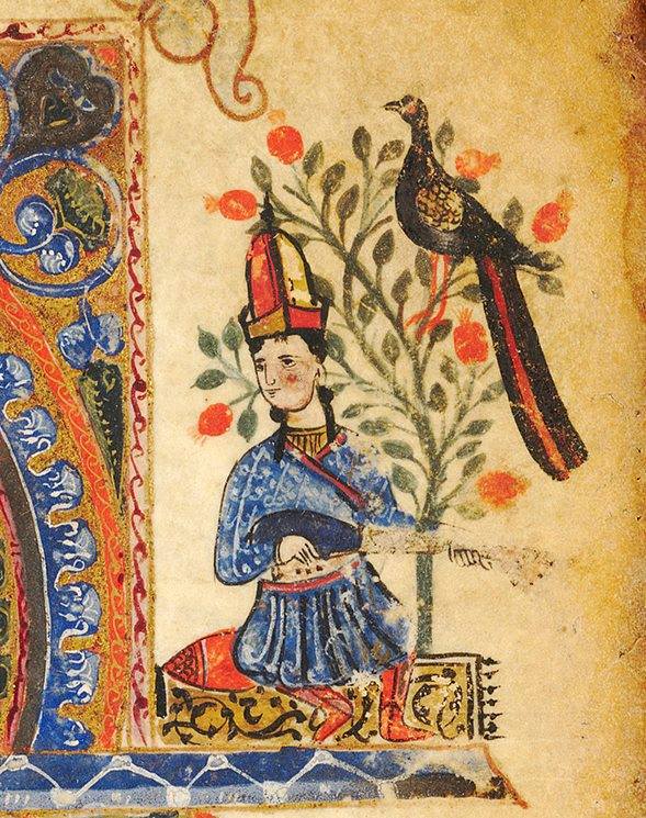 Կը դիտեմ 1211 թուականին Անի քաղաքի Հոռոմոս վանքի մէջ յօրինուած այդ գեղեցկագոյն մանրանկարը։ Նռենիի մը տակ նստած է գեղեցիկ կին մը, գուսան մը գեղաձայն, ձեռքին ունի սազ։ Ծառի վրայ թառած է սիրամարգ մը։ Բարձը ալ է, գորգը կանանչ, դէմքը ալ է, ծառը կանանչ։ Ուրախութեան եւ սիրոյ նուագարնն է սազը անկասկած։ Ճեմեցի հայկական աշուղական մրգաստանի մէջ եւ ականջ տուի սոխակին եւ սազին։ Գարուն է։ Եասամանի ծառի տակ նստած է աշուղը։ Եարը փարչիկ մը գինի առեր եկեր է քովը։ Աղջկան գոյնն է նման գինիի։ Կը խմեն։ Կը հարբենան։ Եարի ծոցը դրախտ, դէմքը լուսին, յօնքը կամար, պռկունքը շաքար։ Սիրավառ աշուղը կ’ածէ իր սազը։ «Թասերն չինի, / Կարմրիկ զինի, / Ձեզ անոյշ չինի… Տաղերն կանչէք, / Սազերն ածէք. / Ծափ տուէք, պարէք», Մկրտիչ Նաղաշ, «Մէ եար ունիմ գովելու, ինչ որ ասիմ, սազ գուքայ, / Քաղցր իխտիլաթ գիտէ, հիտն սազ ու բազ գուքայ», Թիֆլիզ-Նարգիզ, «Եա՚ր, քեզի տեսայ երազով, / Երգում էի էշխիդ (սէր) երգը / Քաղցր ձայնով, ոսկէ սազով», Գուսան Շահէն։ Գինի՞ն էր արդեօք պատճառը… Ուրախ են բոլորը։ 1311 թուականին գարուն էր Եկեղեաց գաւառի մէջ։ Կոնստանդին Երզնկացին, սիրոյ մեծ քնարերգակ, վարդի եւ սոխակի ազնիւ երգիչ, ուրախացաւ բոլորի հետ. «Ուրախացել են մեծ սազով՝ երբ որ տեսան զվարդն բազմել»։
