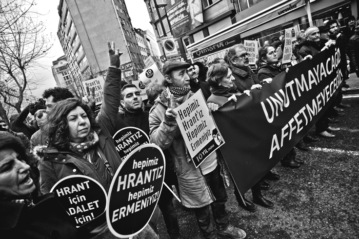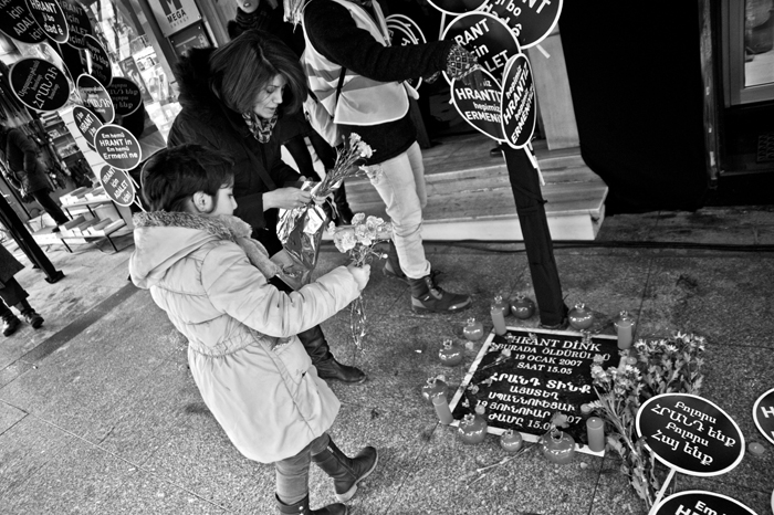 Hrant Dink öldürülüşünün 10. yılında, vurulduğu yerde, Sebat Apartmanı'nın önünde anıldı.
