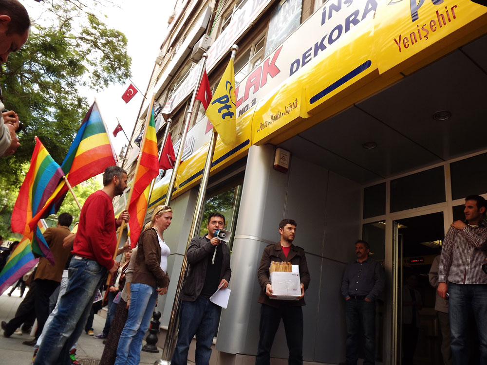 Ankara’da Yüksel Caddesi, İnsan Hakları Anıtı Önü’nde toplanan homofobi ve transfobi karşıtları, Uluslararası Af Örgütü Türkiye Şubesi Koordinatörü Murat Çekiç’in okuduğu basın açıklamasının ardından Yenişehir Postanesi’ne yürüdüler ve görüşme talebine yanıt vermeyen Başbakan Erdoğan’a posta yoluyla ulaşmaktan başka yolları kalmadığını belirtikten sonra imzaları postaladılar.