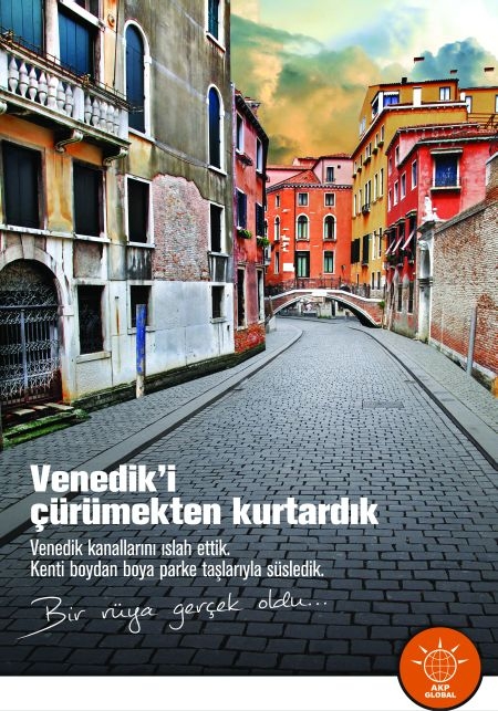 R: Evet, temel mantık, sembollerin bozulması. AKP’nin bu politikaları şehirlerin ruhunu zedeliyor, fiziksel görünümlerini bozuyor. Kentsel dönüşüm mevzularında, soylulaştırma projelerinde halk yok, sermaye var, inşaat sektörü var. Dünyada hangi sembolleri bozabiliriz, diyoruz. Venedik’i ne yaparsak bozabiliriz, diyoruz örneğin. Bu benzerlikleri kurarak ilerliyoruz.