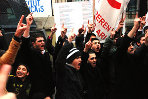 Basın açıklamasının ardından Fransa ve Sarkozy aleyhine sloganlar atan grup tekbir getirerek olaysız dağıldı.