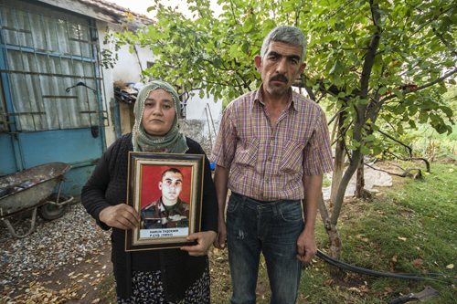 KE: “Benim çocuğum ne için öldü?” diye soran aileleri gördüm. Nevşehir’de görüştüğüm bir şehit ailesi şöyle söylüyordu: “Bize gelip ‘Vatan sağ olsun’ diyorlar. Onların yanında biz de öyle diyoruz ama sonra kendi kendimizi yiyoruz.”