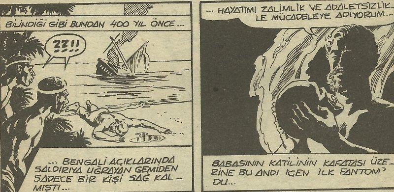 Fantom ya da bizdeki adıyla Kızılmaske, ormanda Kafatası Mağarası’nda yaşar. Yaratıcısı Lee Falk, ilk zamanlarda sadece Kafatası Mağarası ve etrafını konu alırmış. Sonraları buna Fantom Tepesi, Altın Sahili, Fısıldayan Koruluk ve Eden Adası’nı da eklemiş. İyi de yapmış. Enteresan mekânlarda geçen hoş bir çizgi romandır. Türkiye’de 1939’da Çocuk Sesi ve Afacan dergilerinde önceleri Dev Adam ismiyle yayınlanmış. Mış olarak söz ediyorum, çünkü o devire yetişemedim ve sahaflarda da rastlamadım. Sonra bir zamanların efsane dergisi 1001 Roman’da yayınlanmış, Red-Kit’te dolgu malzemesi olarak kullanılmış. Bu satırların yazarı ise ilk defa bizim neslin çocukluğunda önemli bir yer tutan Tay Yayınları’nın çıkardığı fasiküllerde okudu Kızılmaske’yi.