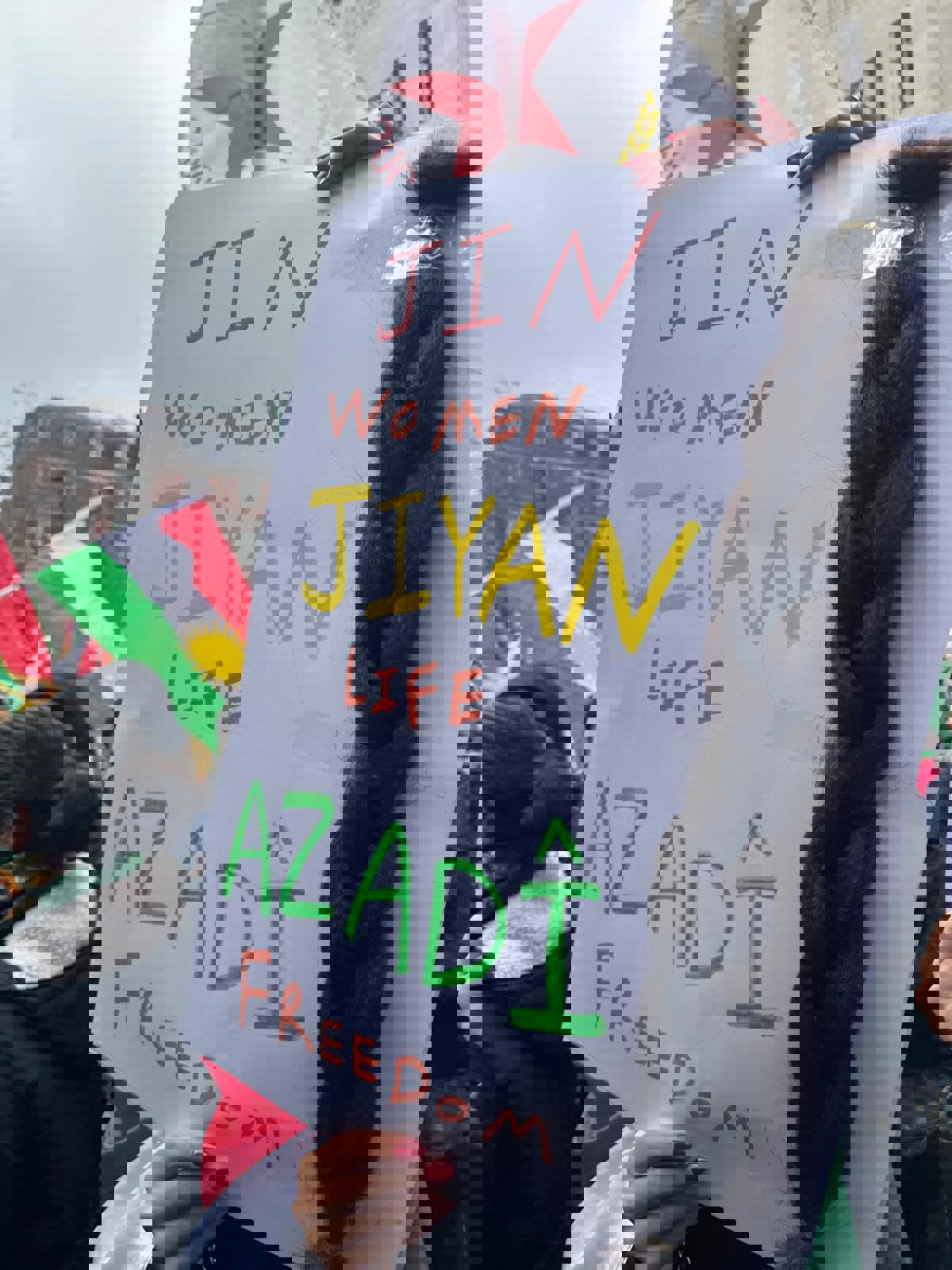 Yürüyüş ilerledikçe kalabalık büyüyerek 40 bini aşkın kişiye ulaştı. Alanda en dikkat çekici olanlar, "Jin Jiyan Azadî" yazılı pankartları taşıyan kadınlardı. Bu pankartların üzerine özenle yapıştırılmış siyah saç örgüleri, geçtiğimiz günlerde YPJ’li bir kadın savaşçının HTŞ güçleri tarafından öldürülmesinin ardından saçının kesilip sosyal medyada paylaşılmasına karşı gelişen tepkiyi temsil ediyordu. Yanlarında ise Kobani’de kuşatma altında, elektrik, internet ve suyun kesildiği koşullarda donarak ölen beş çocuğun ölümüne dikkat çeken pankartlar vardı. Bu pankartlar, alandaki öfkeyi ve acıyı olduğu gibi resmediyordu.