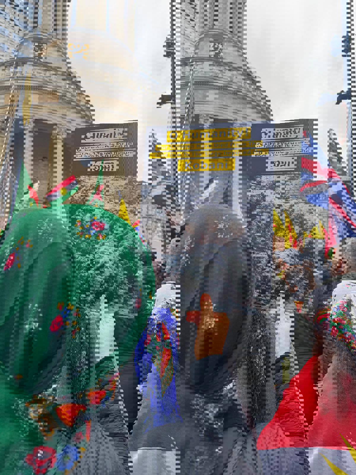 Kalabalığı oluşturan bu farklı parçalardan gelen Kürtler arasında belirgin bir bağ ve dayanışma hissediliyordu. Londra’da ilk kez bu ölçekte, bu kadar uyumlu bir kalabalık görüyorum. Sanki herkes birbirini tanıyor. Defalarca kalabalığı yarıp farklı açılara doğru yürürken birçok insana çarptığım halde hep anlayışla karşılanmış olmam da herhalde protestoculardaki öfkenin asıl adresinin Londra’dan binlerce kilometre uzakta olduğunun başka bir işaretiydi.