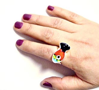 Farklı renklerdeki cam çubuklarını eritip onlara şekil veriyorum. Cama emek veriyorum. Camın aksesuara çevrilmesini ve daha değerli bir obje olarak satılmasını istediğim için gümüşle çalışmaya karar verdim. Gümüş için, yurtdışından gelen hocalardan kurslar aldım. ‘Kayıp mum’ adı verilen bir tekniği öğrendim ve kırmızı mumla, bronz ürünler yapmaya başladım. Bazı gümüş ürünlerin çizimini ben yapıyorum; bir mum ustası onları üç boyutlu hale getiriyor, sonra dökümünü yapıyorum. Bugüne dek, hepsi birbirinden farklı olmak züere, yaklaşık 4500 karakter meydana getirdim. Bu karakterlere daha sonra yüzükler, kolyeler de ekledim.
