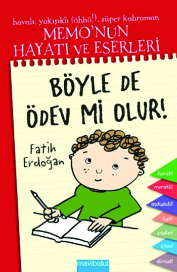 Fatih Erdoğan’ın kitaplarıyla büyüyen ben, onun yazdığı ama küçük bir çocuk ağzından aktardığı tekerlemelerini bu yaşımda hâlâ ezbere bilirim. Bu yüzdendir ki yazdığı kitapların ve Mavibulut Yayınları’nın bende ayrı bir yeri vardır. Peki ‘Memo’nun Hayatı ve Eserleri’ alt başlığıyla bize, yeni başlayan bir serinin ipucunu veren kitap, nelerden mi bahsediyor? Daha kitap kapağında, en üstte ‘havalı, yakışıklı (öhhö!), süper kahraman’ sıfatlarıyla Memo’nun hemen kendi hayatını anlatan bir zıpır olduğu bilgisini ediniyoruz. Ama dikkat dikkat! ‘Böyle de Ödev mi Olur’, yüksek dozda bağımlılık yapıp sizi gülmekten yerlere yatırabilir! Çocukların kendi yaş dönemlerine göre okulda, evde, aileleriyle, arkadaşlarıyla yaşadığı problemler konuşma diliyle anlatılıyor Memo tarafından. Böylece yetişkinler dünyasında her gün birbirinden ‘büyük’ sorunlarla uğraşırken göz ardı ettiğimiz çocuk dünyasının sorunlarına eğiliyoruz, hem de uzun zamandır atmadığımız kadar neşeli kahkahalarla…