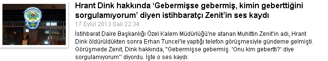 Gazeteler 17 Eylül 2013’de Dink cinayetinde tutuklu sanık Erhan Tuncel ile yine cinayette adı geçen polis memuru Muhittin Zenit arasında geçtiği belirtilen telefon görüşmesinin kayıtlarını yayımlamıştı.