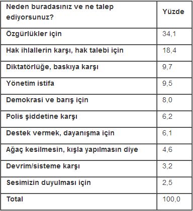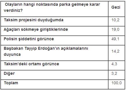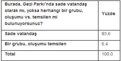 Olaylar geçtikçe sade vatandaş olarak gelenler yüzde 85’ten yüzde 97’ye kadar çıkmış. Parktakilerin yüzde 47’sini sade vatandaş olup polis şiddetini gördüğü noktada gitmeye karar verenlerden oluşuyor.