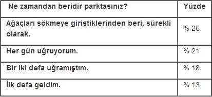 Olaylarla ilgili ilk haberi, parkta bulunanların yüzde 15’i bir arkadaş veya tanıdığından ve yüzde 70’i sosyal medyadan duymuş. İlk olarak televizyondan duyanlar yüzde 7 oranında.