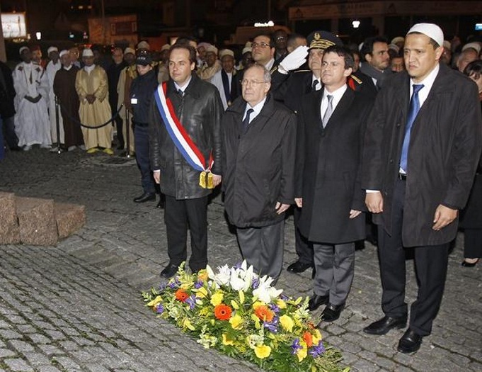 Ziyarete Fransız İçişleri Bakanı Manuel Valls, (sağdan ikinci) ve yaklaşık 30 imam katıldı.