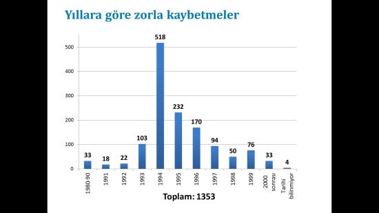 Çalışma kapsamında ilk olarak İnsan Hakları Derneği, Türkiye İnsan Hakları Vakfı, Kayıp Yakınları Derneği gibi insan hakları ve kayıp yakınları derneklerinin hazırladığı veriler üzerinden bir karşılaştırma yapıldı.