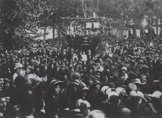 Ermeni alfabesinin oluşturulmasının 1500., ilk Ermenice kitap basımının 400. yılı vesilesiyle Taksim Gazinosu bahçesinde düzenlenen büyük kutlama. (1913)
