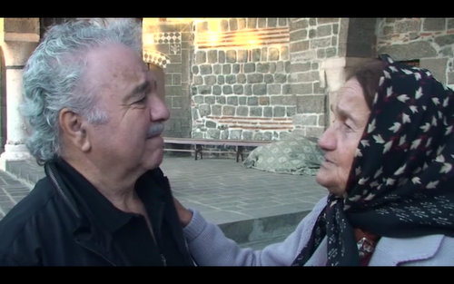 Yukarıdaki fotoğraf ‘Garod’dan, Onnik’le Baydzar’ın karşılaşma sahnesinden. Biri Amerika’da, biri Diyarbakır’da yaşayan, birbirini tanımayan iki Diyarbakırlı Ermeni’nin kavuşma ânı. Artık dünyada çok az insanın konuşabildiği Dikranagert Ermenicesiyle birbirlerini selamlayan iki insanın yüzlerindeki minnettarlığın ifadesi. Her şeyden önce, birbirlerinin varlığına duydukları minnetin ifadesi. Aynı şehrin, aynı mahallenin çocuklarının birbirlerine duydukları hasretin ifadesi. Soykırıma uğratılmış bir halkın evlatlarının gözlerindeki acının ifadesi. Biri, inatla, Diyarbakır ve Anadolu Ermeni müziğini uzun yıllardır dünyanın dört bir yanındaki Ermenilere ulaştıran bir müzisyen; bitmekte olan bir geleneğin son temsilcisi. Öteki, inatla, memleketini terk etmeyen, şiddet dolu bir tarihe minik bedeni ve kocaman gülümsemesiyle direnen, yitip giden bir hayatın son temsilcisi. Katillere, ölüme, kırıma inat, yaşamı yeniden kuranlar. O yüzden, bu fotoğraf benim için her zaman biraz da o yaşama inadının ifadesi olacak.