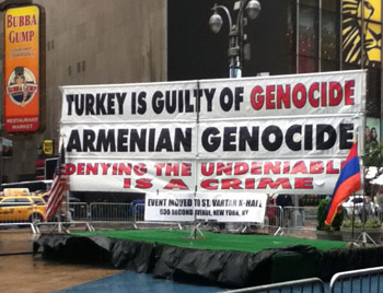 Her yıl 24 Nisan’da ABD’nin New York eyaletinde Times Meydanı’nda gerçekleşen anma etkinliği bu yıl yağmur nedeniyle Surp Vartan Ermeni Katedrali’nde yapıldı. Etkinliğin açılış konuşması, “24 Nisan bir nefret günü değil. Bizler bugün burada toplanabiliyorsak, bunu, 1915’de büyükbabalarımızı ve büyükannelerimizi o kıyımdan kurtaran Müslüman Türk komşularımıza borçluyuz” ifadesiyle başladı. Genç yaşlı pek çok Ermeni’nin bir araya geldiği ve pek çok Amerikan vatandaşının yanı sıra yabancı basının da ilgi gösterdiği anma programında, katılımcılar, ellerinde 1915’te Osmanlı Ermenilerini hedef alan olaylara dikkat çeken Amerikan başkanlarına ait demeçlerin yer aldığı dövizler taşıdılar.