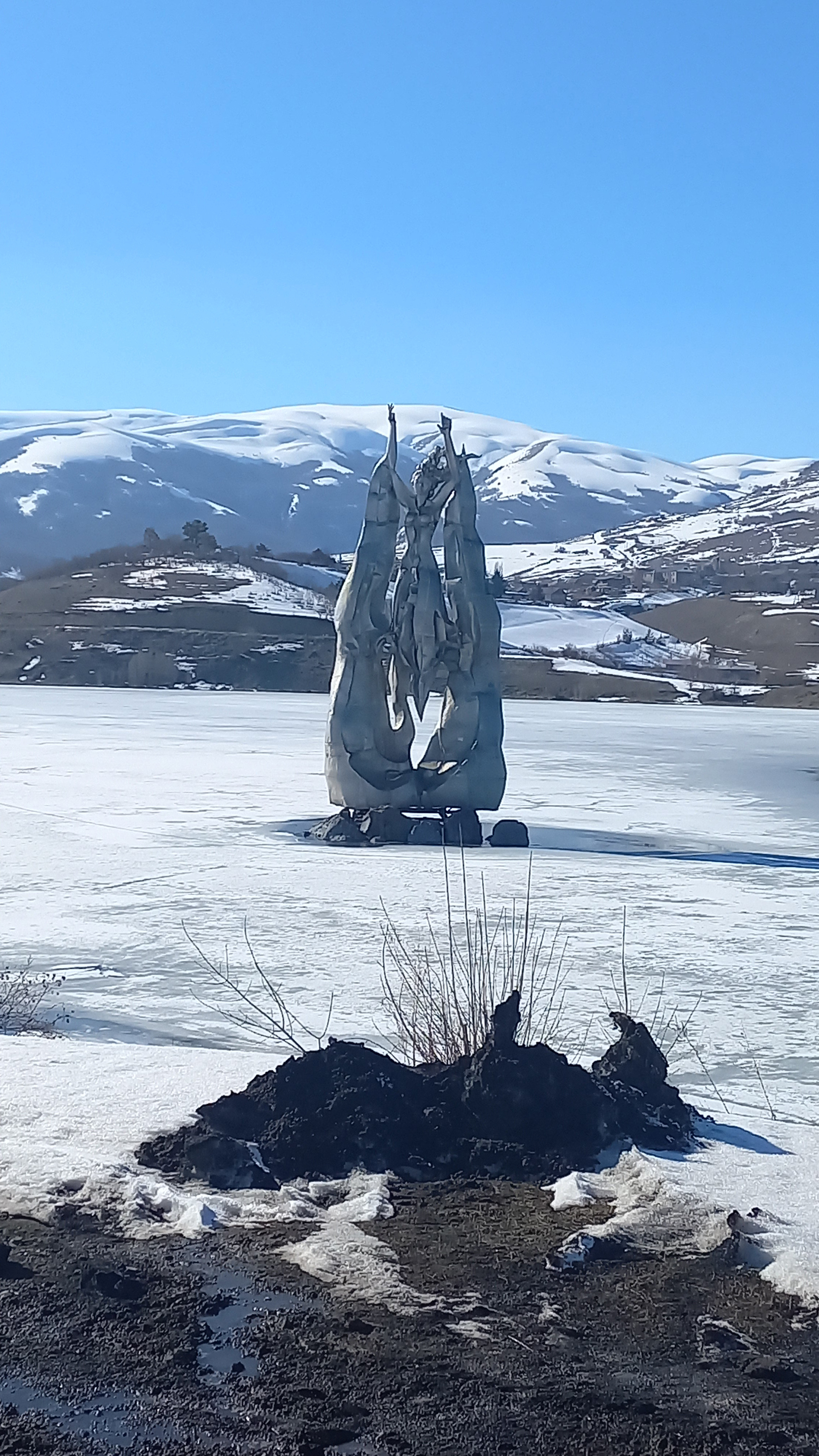 Alevler içinde göğe uzanan kadın heykeli, Hrazdan şehrine yaklaşırken parlak metal bir meşale gibi donmuş, Hrazdan gölünün içinden yükseliyor. 22 metre yükseklikte, etkileyici bir anıt. Gölün öbür kıyısında su yüzüne “konmuş” gerçek bir Tupolev-134A manzaraya başka bir sürreel boyut ekliyor. Bir bakıma, Ermenistan’ın unutulmaya terk edilen Sovyet geçmişinin ikonu bunlar. Müthiş cesur, müthiş naif, biraz da hüzünlü. Heykel, Hrazdan'ın en ikonik sembollerinden biri olmasına rağmen, henüz resmi tarih ve kültür anıtları listesine dahil edilmemiş.