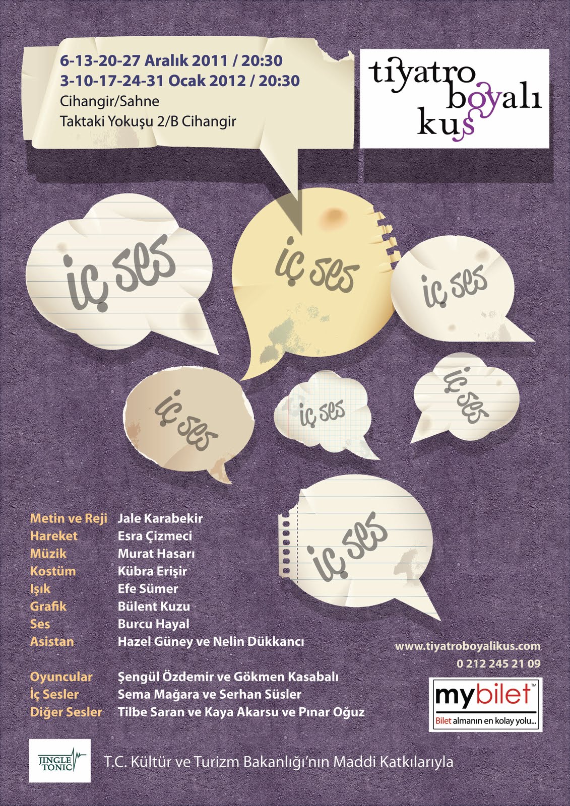 Biletler için: www.mybilet.com, rezervasyon için: 0212 245 21 09
