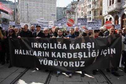 Sayıları yaklaşık bini bulan eylemciler 'Irkçılığa karşı halkların kardeşliği için yürüyoruz' yazılı dev bir bez pankartın arkasında yürüyüşe geçti. Ellerinde 'Yaşasın halkların kardeşliği', 'Türkün Türkten başka dostu var' ve 'Faşizme geçit yok' şeklinde döviz taşıyan eylemciler, 'Nefret sizin insanlık bizim' ve 'Irkçılığa geçit vermeyeceğiz' şeklinde slogan atıp zılgıt çekti.