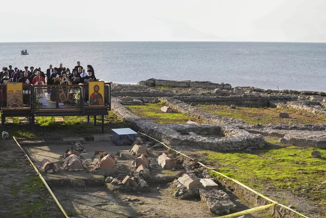 Antik Aziz Neofitos Bazilikası arkeolojik kazıların yakınında kurulan platformda, Papa ve tüm ruhaniler ilahiler eşliğinde ilerledi. Burada bir koro da ruhani ekibe eşlik ederek ilahiler seslendirdi.