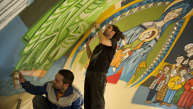 Kilise kubbesine ‘graffiti’den fresk beğeni topladı