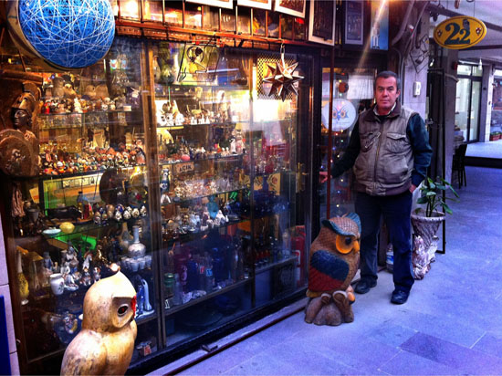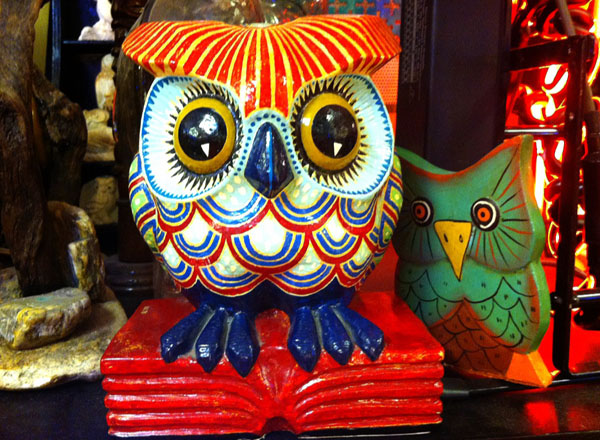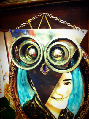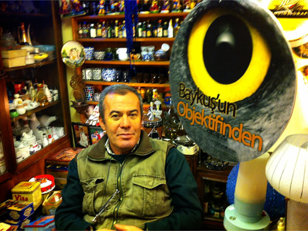 Çoğunlukla baykuş olmakla birlikte parfüm şişeleri, kutular, oyuncaklar, aynalar yani aklınıza gelebilecek her türlü obje bulunuyor. Geri dönüşüme önem veren bir insanım. Kullanışsız olarak düşünülen her şeyi biriktiririm ve daha sonra bir şekilde mutlaka değerlendiririm. Özellikle baykuş bu felsefeyle çok bütünleşti. Koleksiyonumda çeşitli malzemelerden oluşturduğum baykuş tasarımlarım mevcut. Ölünceye kadar hiçbir objeyi yanımdan ayırmamak gibi bir düşünceye sahip değilim. Burada bulunan tüm objelerin bir öyküsü var. Ve onlar satıldıkça yeni sahipleriyle birlikte hikayelerini sürdürüyorlar. Bu da beni mutlu ediyor. Burası sadece ticari bir mekan değil. Buraya gelenlere “müşteri” gözüyle bakmıyorum. Onlara “konuklarım” diye hitap ediyorum. Özellikle de baykuşla ilgili ön yargıları değiştirmeye çalışıyorum.