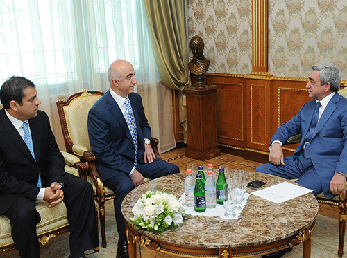 AJA Yönetim Kurulu Başkanı Gagik Gevorkyan (ortada) Ermenistan Cumhurbaşkanı Serj Sarkisyan ile |