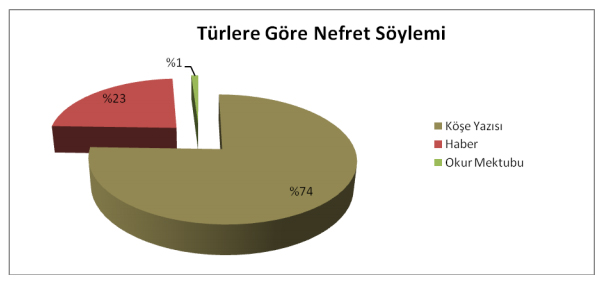 Öte yandan nefret söylemi içerdiği tespit edilen haber ve köşe yazıları üzerinden hazırlanan raporda, nefret söyleminin hedefi olan grupların hangileri olduğu, hangi konu nedeniyle ve hangi yöntemler kullanılarak nefret söyleminin üretildiği gibi istatistiki bilgilerin yanı sıra, örnek yazı ve haberlerin söylem analizleri yer alıyor.
