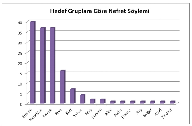 Bu dönemde nefret söylemi içeren haber ve köşe yazılarında en sık hedef gösterilen gruplar, Ermeni, Hıristiyan, Yahudi ve Rumlar. Raporda, Ermenilere yönelik nefret söyleminde en fazla öne çıkan öğenin, son dönemde yoğunlaşan çatışma ortamı üzerinden Ermenilerin PKK ile ilişkilendirilmesi biçiminde olduğuna işaret edilerek “Müslüman Kürt’ten zarar gelmez, PKK bir Ermeni hareketi” anlayışı üzerinden üretildiği ifade edildi. Raporda, bu söylemin, kimi zaman Hıristiyanları ve Yahudileri hedef alan içeriklerle de yeniden üretildiğinin altı çizildi.