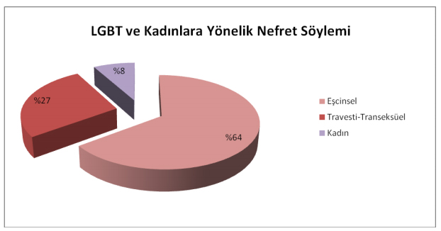 LGBTT bireylerine yönelik hakaret ve aşağılama içeren ifadelerin yer aldığı haber ve köşe yazılarında eşcinselliğin genellikle doğrudan sapıklık, hastalık, ahlaksızlık veya ‘sosyal felaket’ olarak tanımlandığına dikkat çekilen raporda “Travesti ve transeksüellerin temsil edildiği içeriklerde önceki dönemlerdeki gibi söz konusu grupları suçla ilişkilendirme üzerine kurulu” dendi.